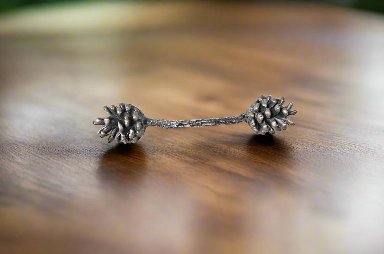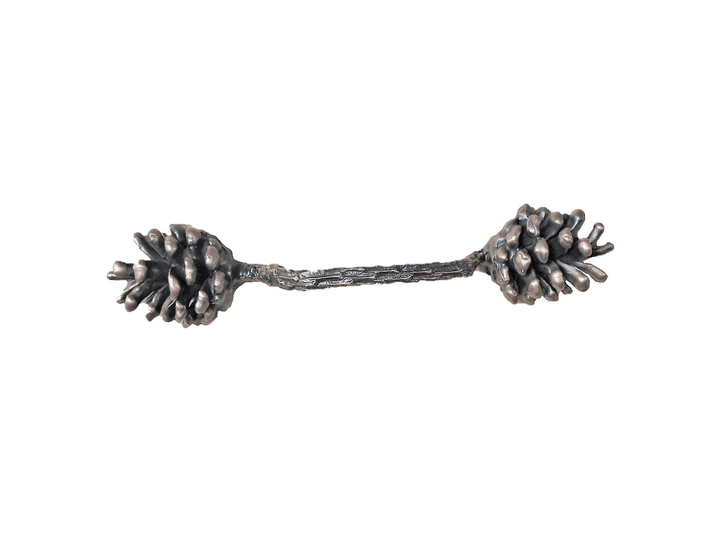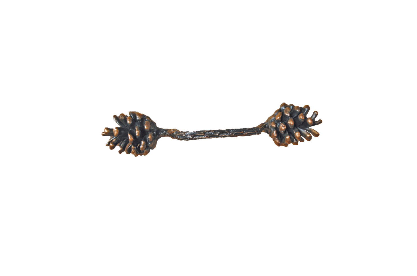 Utilize the beauty of nature in your home decor with our lodgepole pinecone branch drawer pull. Each custom cabinet handle is crafted in bronze from a real pinecone and lodgepole branch, adding a touch of rustic elegance to any room.