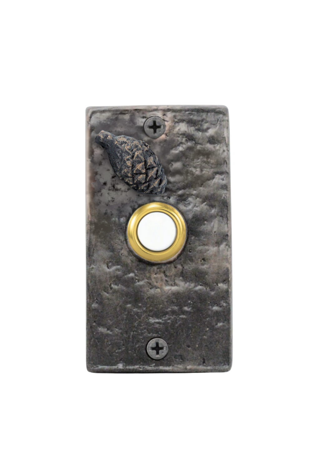 The rectangle lodgepole pinecone doorbell combines rustic charm with functionality. Made from real pinecones, this rustic pinecone doorbell adds a touch of nature to any home. Its unique rectangular shape sets it apart from traditional doorbells. Upgrade your front entrance with this one-of-a-kind piece!