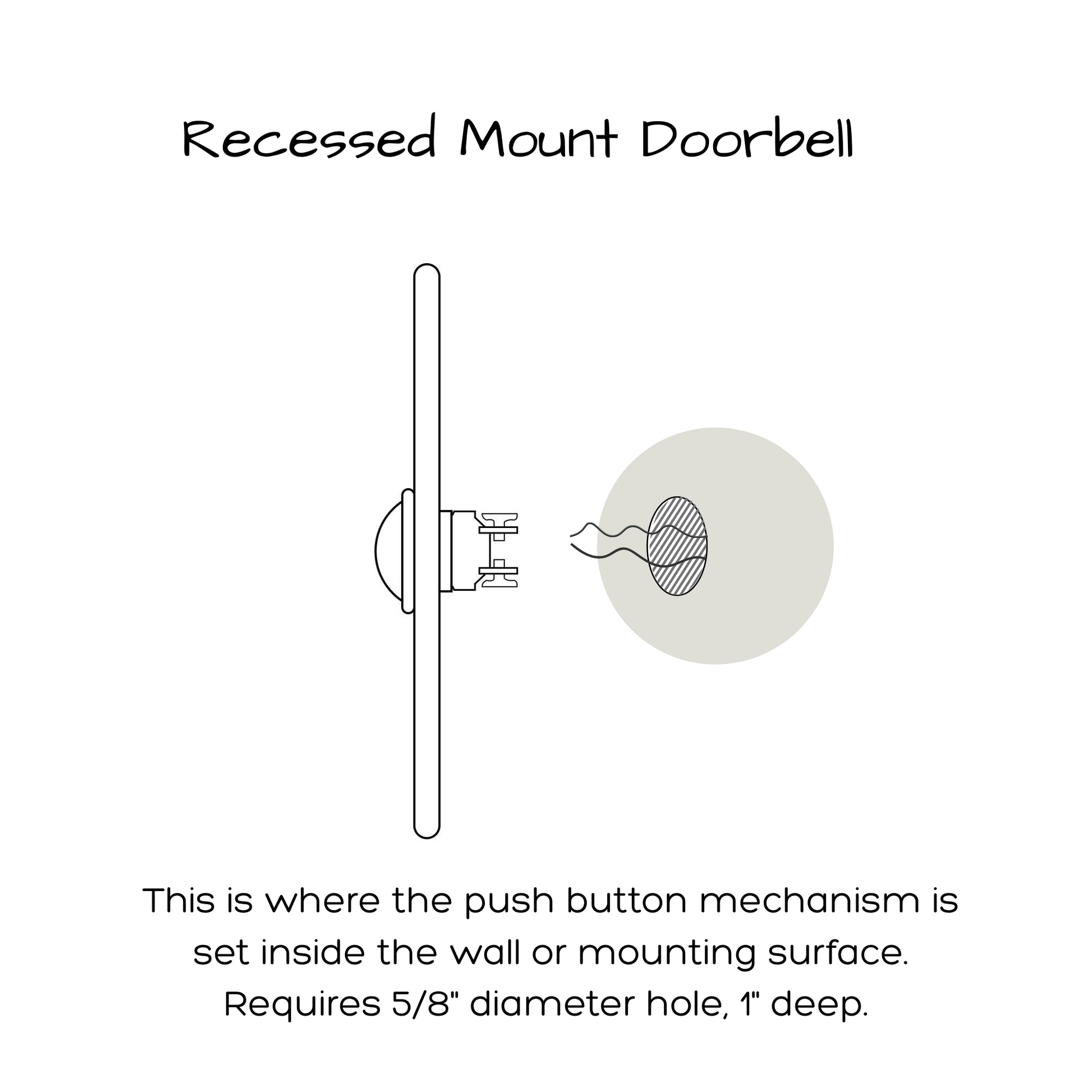 Each piece incorporates a standard lighted doorbell button and matching screws are provided for mounting. All doorbells will need a 5/8” hole for the push button to recess into.