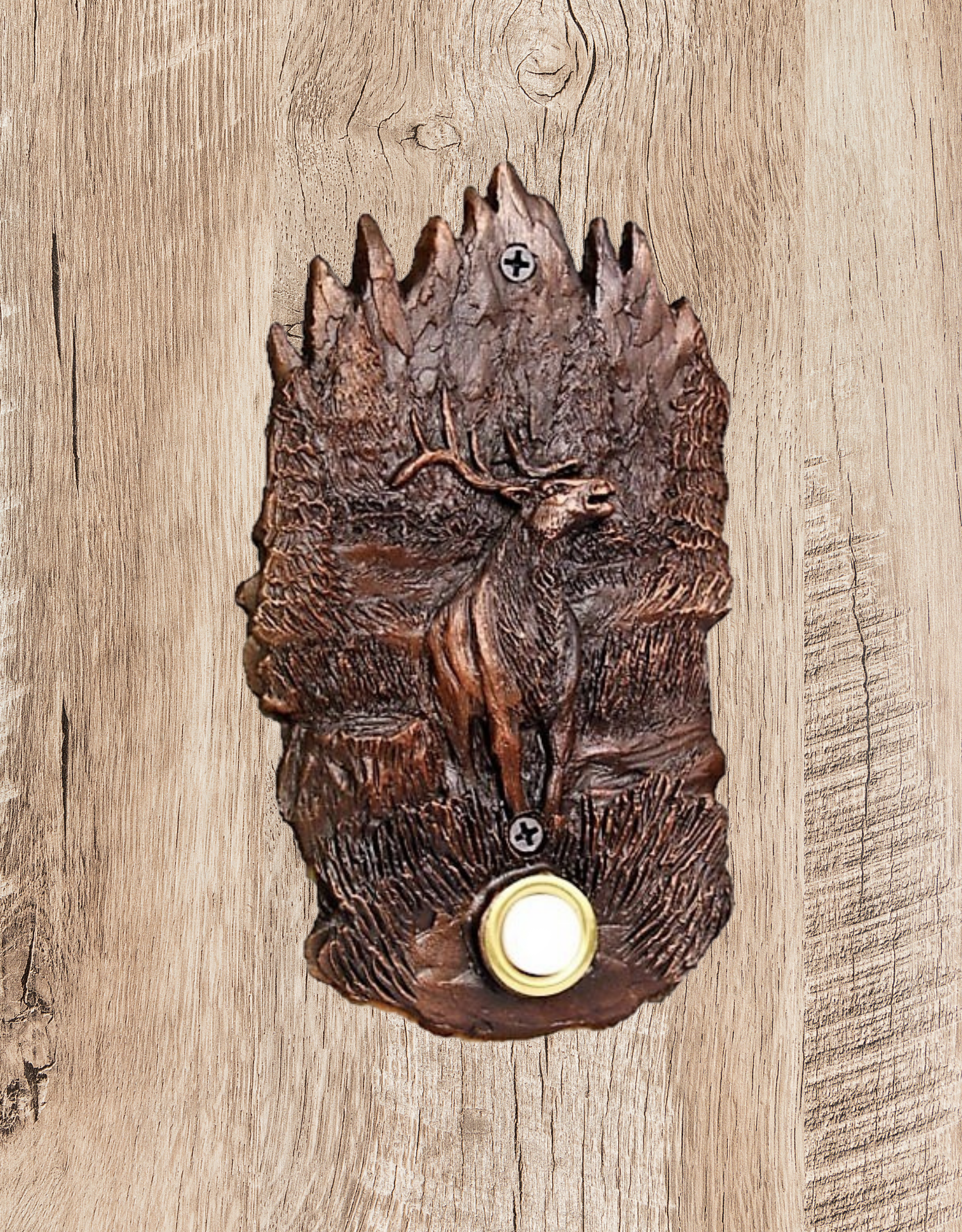 Ring in guests with style and charm with our scenic elk doorbell. This custom bronze rustic doorbell adds a touch of nature to your doorstep. Because everyone enjoys a wild entrance. (Perfect for the outdoorsy type!)