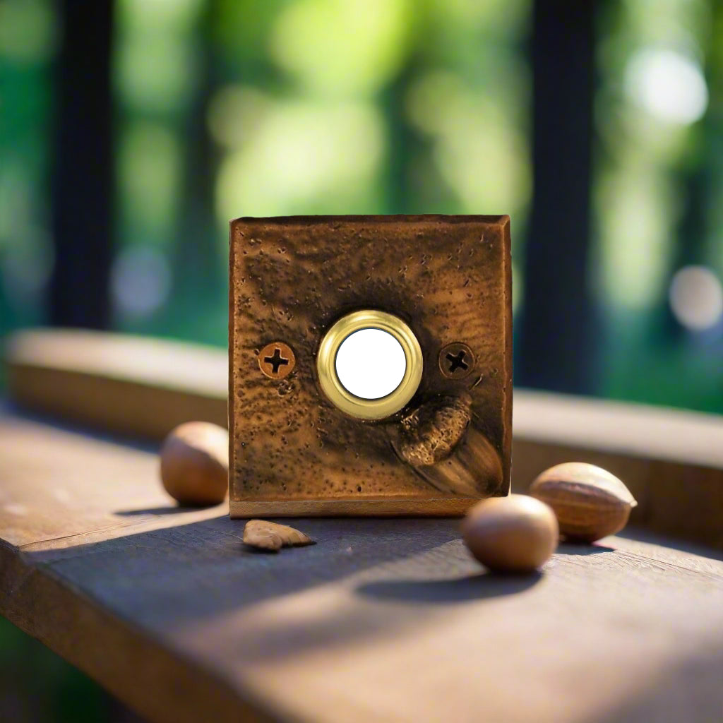 The Square Acorn Doorbell is the perfect addition to any rustic home. This rustic bronze acorn doorbell adds a touch of elegance to your entryway. Its unique square acorn design is sure to impress visitors and make a lasting impression. Upgrade your curb appeal today with the Square Acorn Doorbell.